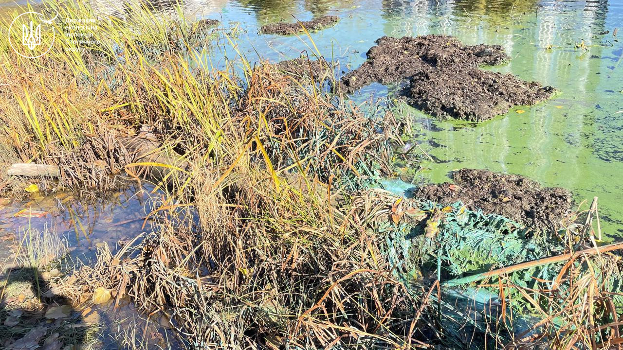 Інспекторами встановлено наявність забарвлення води синьо-зеленого кольору поблизу берега та на бетонних плитах. Забарвлення має природне походження і пов’язане з процесами розкладання органічних залишків (водоростей та очерету), що утворилися після проведення робіт з розчищення.