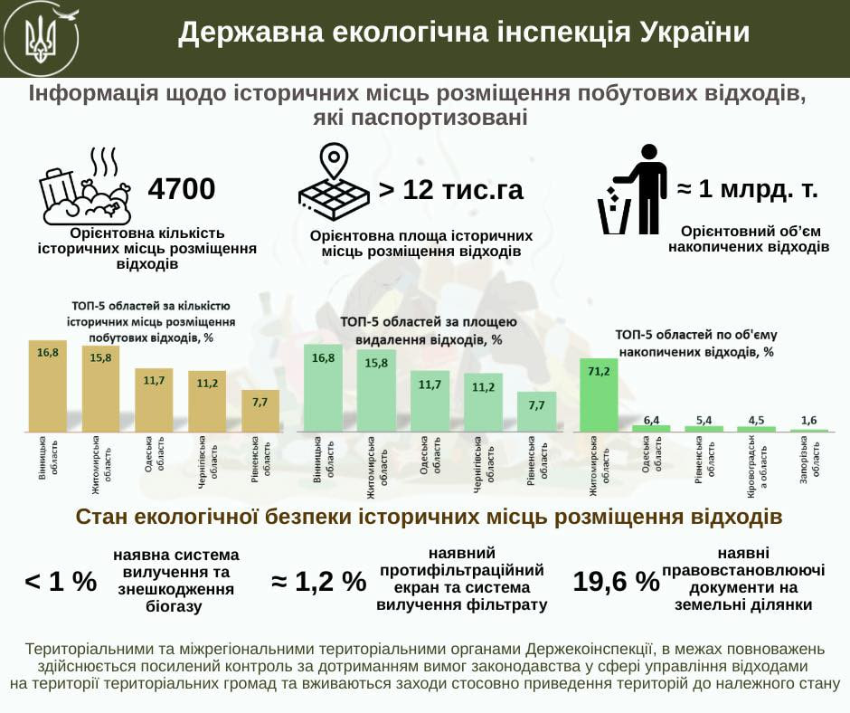 № 1688 з метою забезпечення територіальними та міжрегіональними територіальними органами аналізу та подальшого контролю за станом екологічної безпеки історичних місць розміщення побутових відходів. Результати проведеної роботи висвітлено на інформаційній панелі.