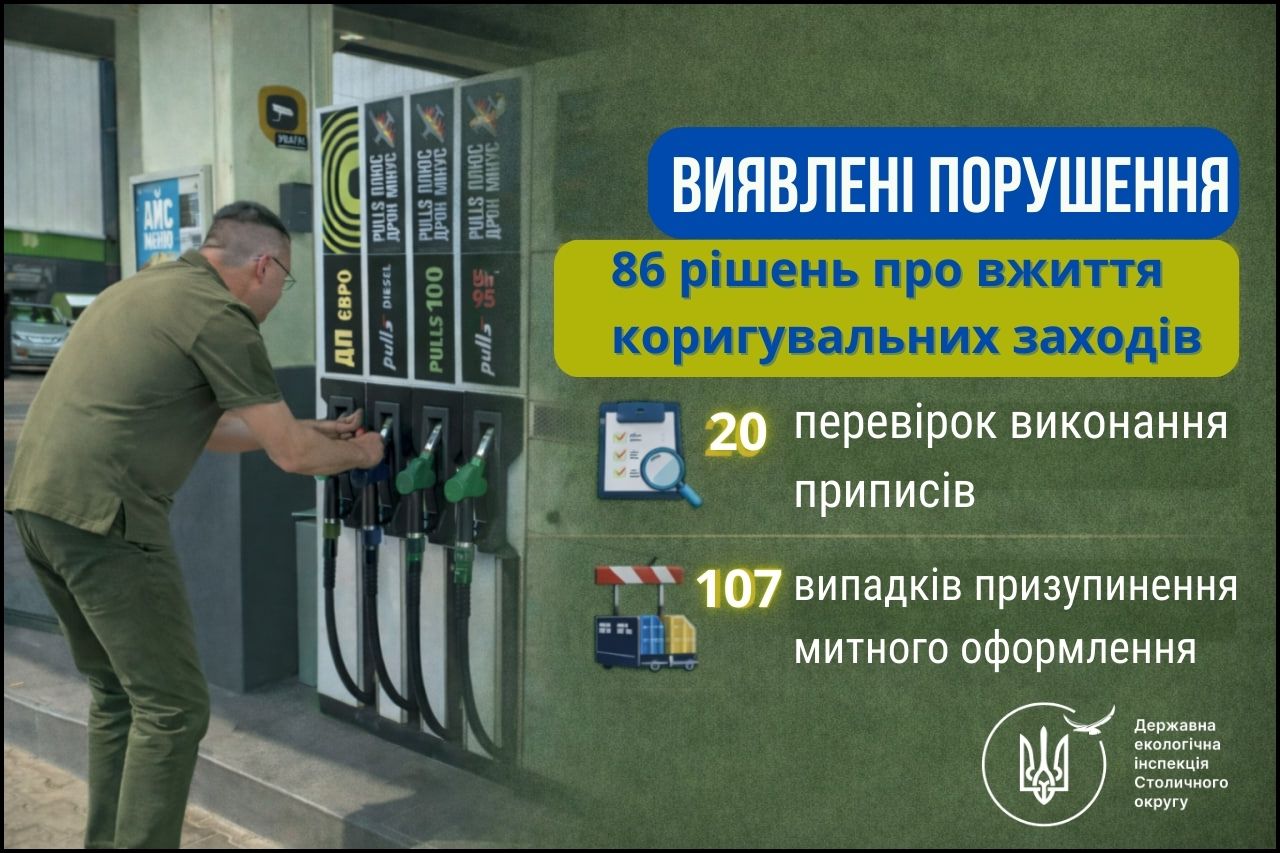 Державна екологічна інспекція Столичного округу звітує про результати контролю за обігом пального на АЗС Києва та Київської області протягом 2025 року. Діяльність була спрямована на перевірку відповідності нафтопродуктів вимогам Технічного регламенту та захист прав споживачів.