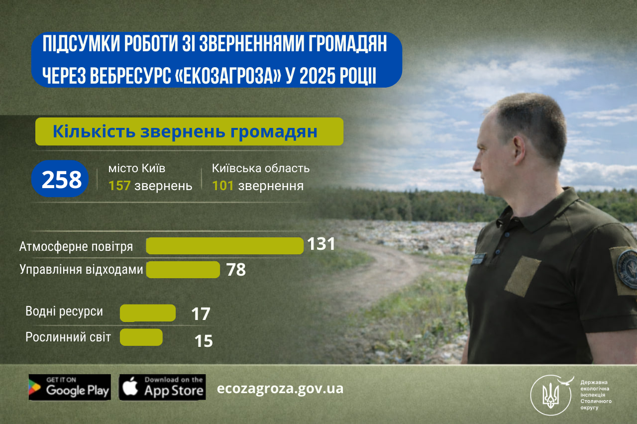 ♻️ Протягом 2025 року на розгляд Інспекції через зазначену платформу надійшло 258 звернень: