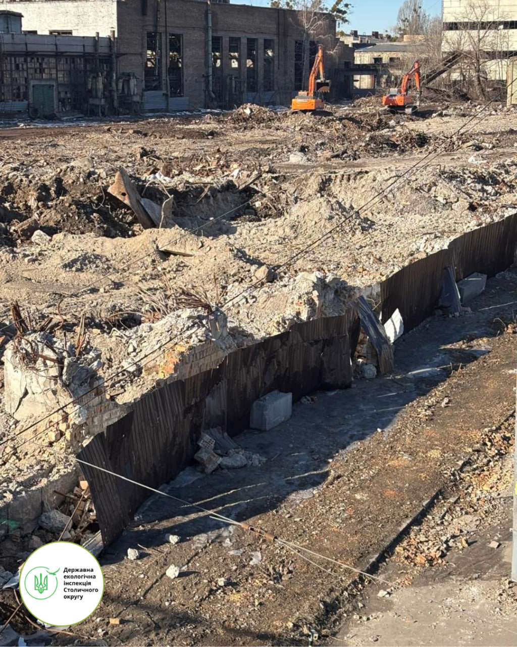 🔰 З метою перевірки інформації, поширеної у засобах масової інформації щодо проведення робіт з демонтажу цеху заводу «Більшовик» у межах завершення реконструкції Шулявського шляхопроводу (транспортної розв’язки на перетині Берестейського проспекту з вулицею Вадима Гетьмана у м. Києві), державними інспекторами з охорони навколишнього природного середовища Столичного округу здійснено виїзд на місце для проведення огляду та фіксації обставин.