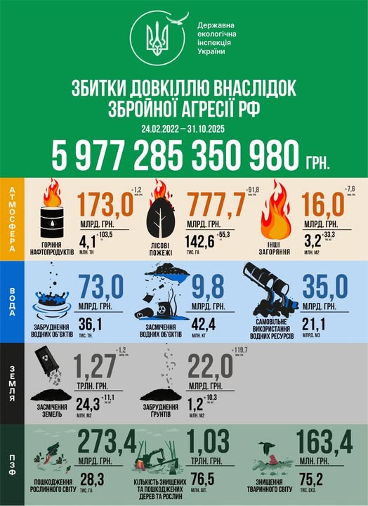 Оновлена щотижнева інфографіка про збитки, завдані довкіллю